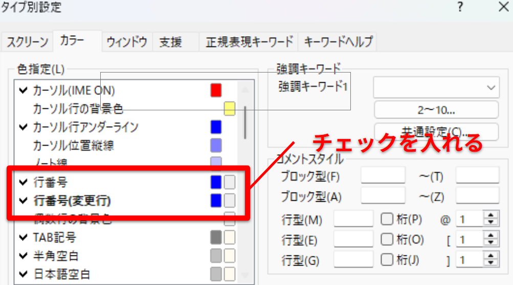 同じ場所から設定できるのでこちらもチェックを入れておきましょう。